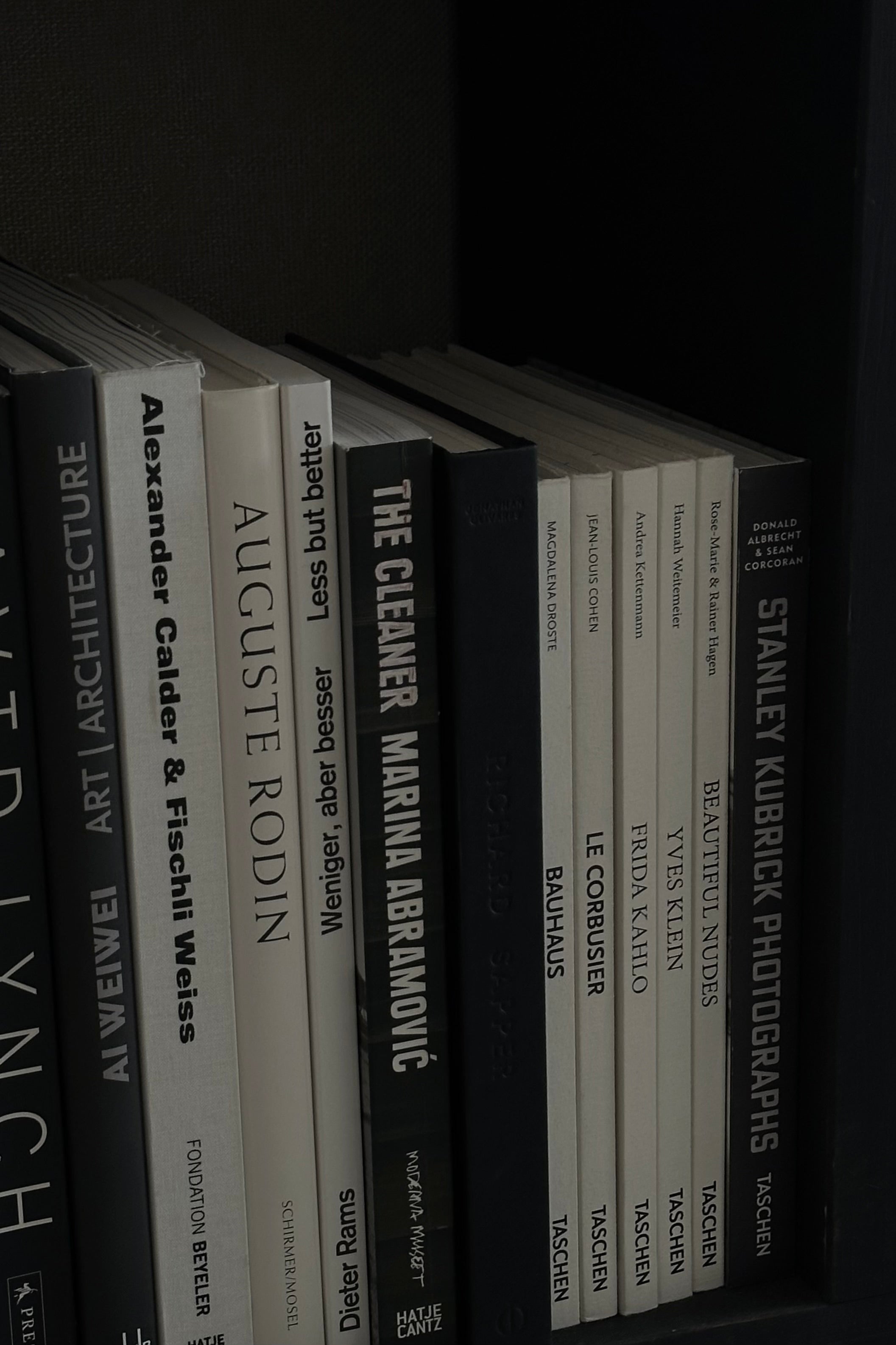 Our art studio is a testament to minimalist interior design, boasting a black-and-white aesthetic that radiates brutalist vibes. It’s a space where simplicity meets sophistication, with clean lines and stark contrasts setting the stage for creativity. The studio is filled with collectible designs and vintage gems, each piece telling a story and adding to the character of the space.
